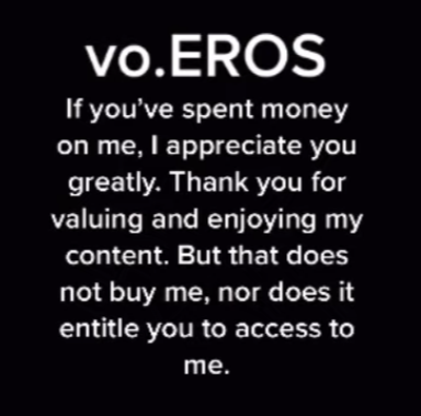 “Trust me, I’m flattered, but my content is for sale not me. But intent matters a lot and I think as long as people are genuine and respectful, that comes through in the end” – Eros on fans using pet names and honorifics